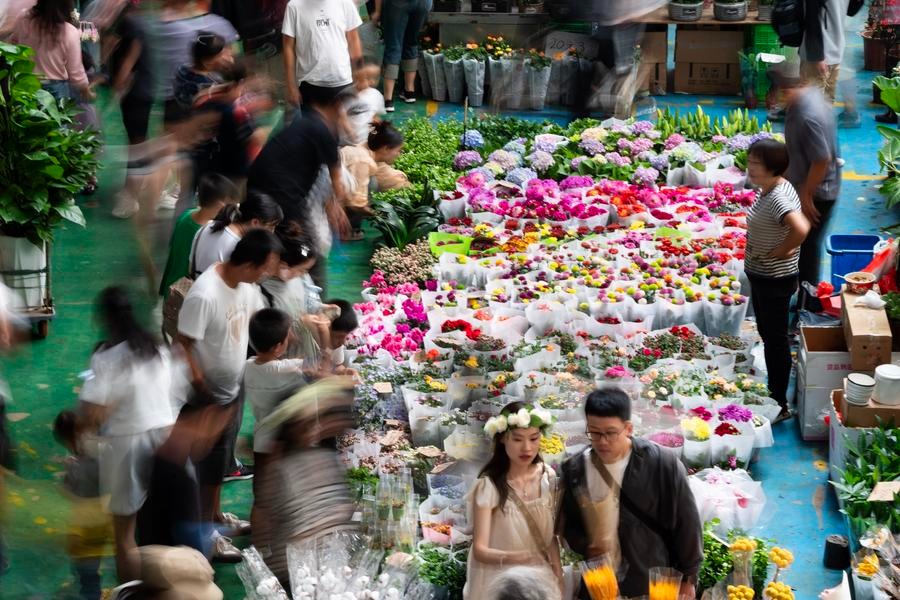 Γιγαντια?ο καλ?θι με λουλο?δια κοσμε? την πλατε?α Τι?ν-αν-Μεν λ?γω τη? επικε?μενη? Εθνικ?? Εορτ??.