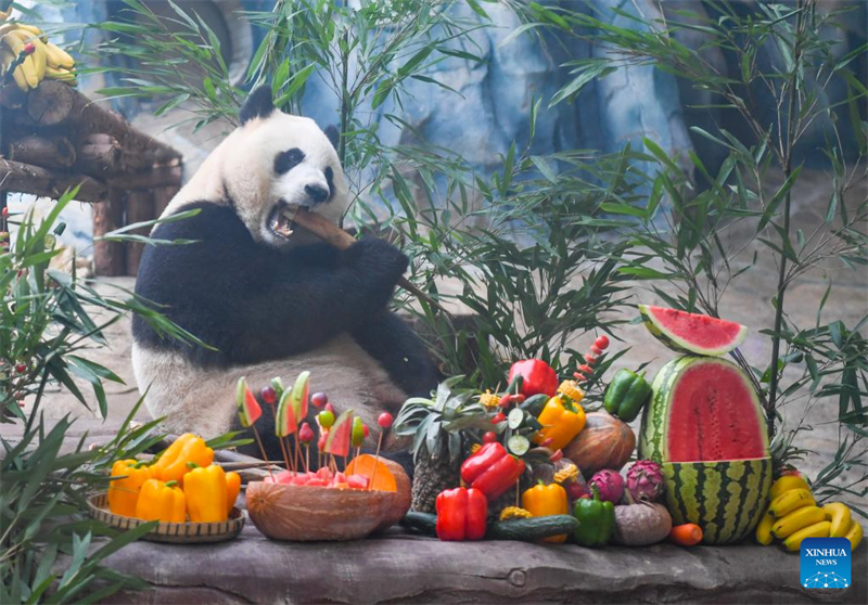 ?νθρωποι διοργαν?νουν μια ειδικ? γιορτ? γενεθλ?ων για τρ?α γιγ?ντια π?ντα στην π?λη Τσονγκτσ?νγκ 07-08-2024