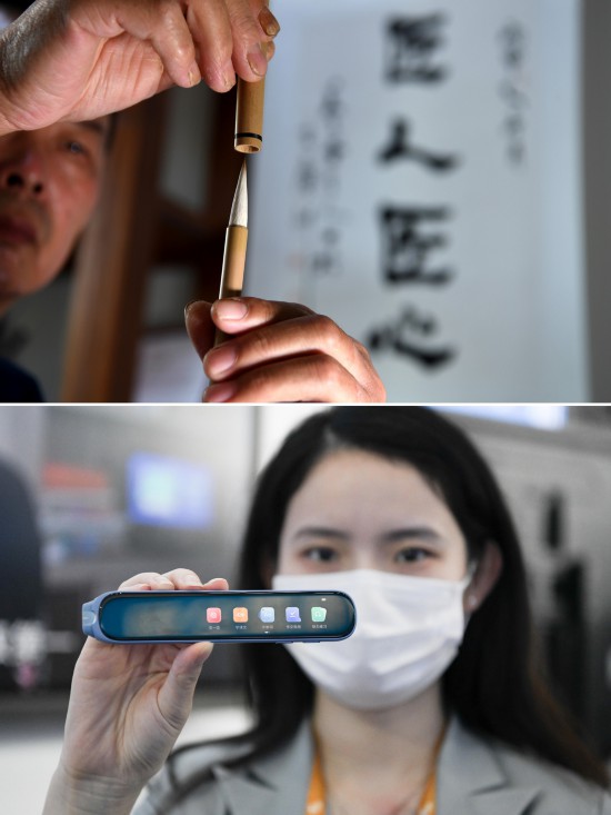 Παρακ?τω: Μεταφραστικ? στυλ? τεχνητ?? νοημοσ?νη? που παρ?γεται απ? την iFlytek παρουσι?ζεται στο Παγκ?σμιο Συν?δριο Μεταπο?ηση? στην Χ?φε?, στην επαρχ?α ?νχουε? τη? Ανατολικ?? Κ?να?, στι? 20 Σεπτεμβρ?ου 2022. [Φωτογραφ?α/Xinhua]