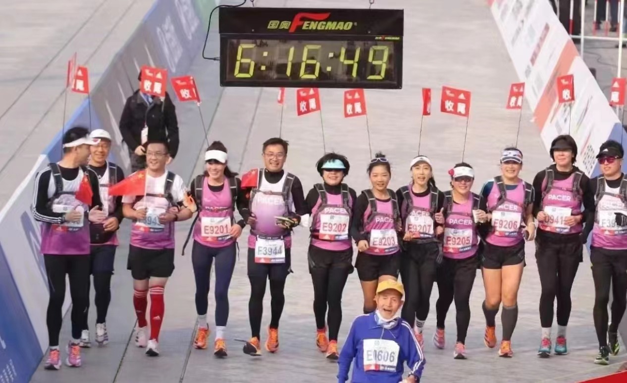 Η Γου??χονγκ Τ?νγκ (Weihong Tang) (7η απ? δεξι?), πρ?εδρο? του Εποπτικο? Συμβουλ?ου τη? Λα?κ?? Καθημεριν?? Ονλ?ιν, στον Μαραθ?νιο του Πεκ?νου το 2022. (Η φωτογραφ?α δ?θηκε στην Λα?κ? Καθημεριν? Online)