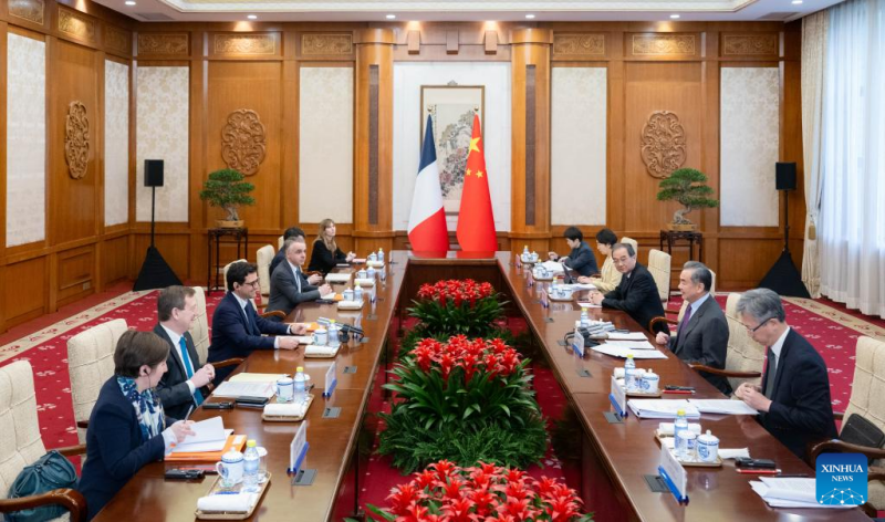 Ο Κιν?ζο? υπουργ?? Εξωτερικ?ν Γου?νγκ Γι ?χει συνομιλ?ε? με τον Στεφ?ν Σεζουρν?, Γ?λλο υπουργ? Ευρ?πη? και Εξωτερικ?ν, στο Πεκ?νο, πρωτε?ουσα τη? Κ?να?, 1 Απριλ?ου 2024. (Xinhua/Zhai Jianlan)