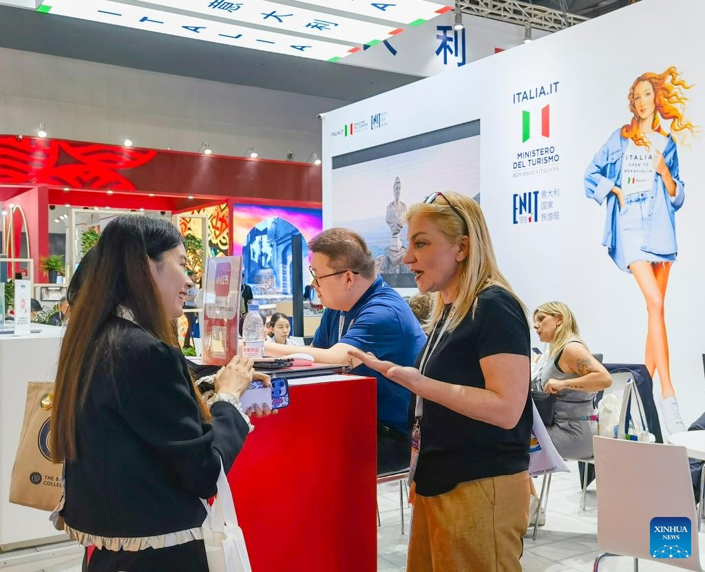 ?νθρωποι επισκ?πτονται το περ?πτερο τη? Ιταλ?α? στην ?κθεση ITB China 2024 στη Σαγκ?η, στι? 27 Μα?ου του 2024.