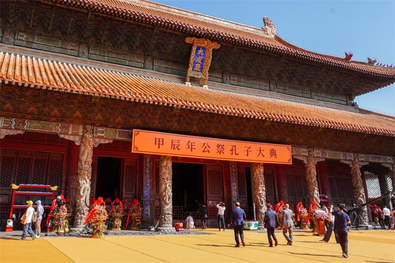 Καλεσμ?νοι μπα?νουν στο Να? του Κομφο?κιου κατ? την τελετ? δημ?σια? μν?μη? του Κομφο?κιου για το 2024 στην π?λη Τσιουφο? τη? επαρχ?α? Σαντ?νγκ, στι? 28 Σεπτεμβρ?ου. (Φωτογραφ?α / Xinhua)