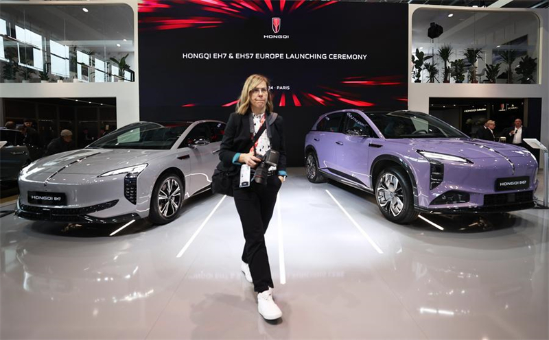 Επισκ?πτρια στο χ?ρο τη? FAW-Hongqi στον φετιν? Σαλ?νι Αυτοκιν?του του Παρισ?ου, Γαλλ?α, 14/10/2024. Φωτογραφ?α: Xinhua
