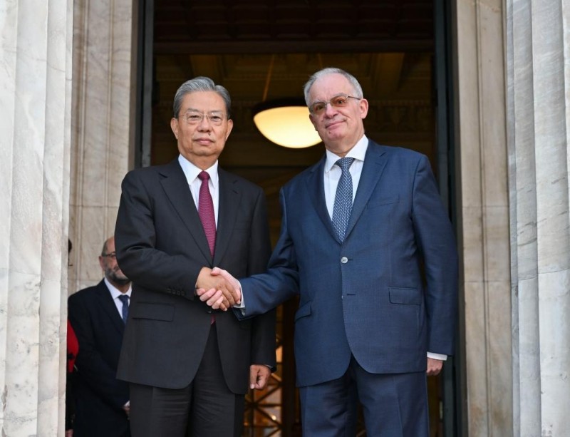 Ο Τζ?ο Λετζ?, πρ?εδρο? τη? Μ?νιμη? Επιτροπ?? του Εθνικο? Λα?κο? Συνεδρ?ου τη? Κ?να?, συναντ? την Ελλην?δα Πρ?εδρο Κατερ?να Σακελλαροπο?λου στην Αθ?να, Ελλ?δα, 28 Νοεμβρ?ου 2024. (Φωτογραφ?α/Xinhua)