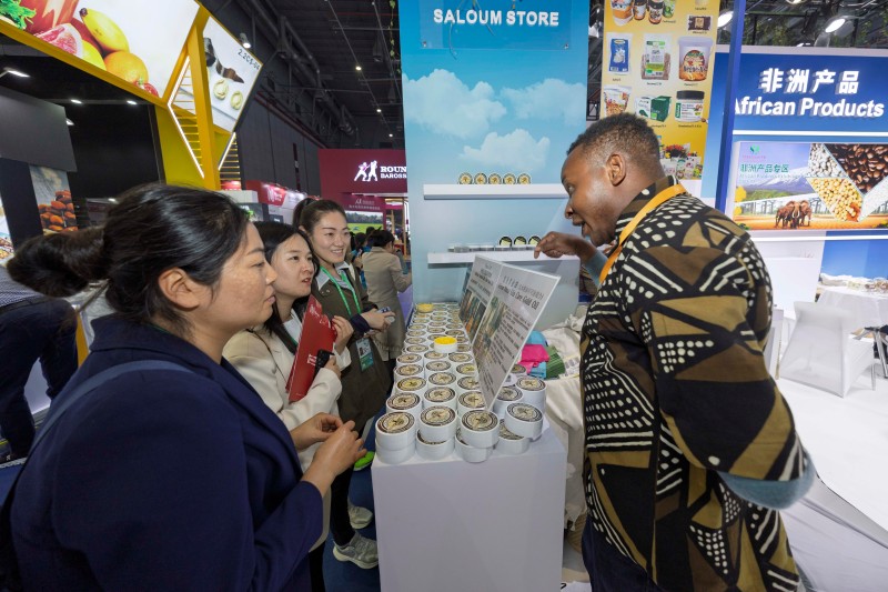 Στι? 8 Νοεμβρ?ου, εκθ?τε? παρουσ?ασαν αφρικανικ? προ??ντα στον εκθεσιακ? χ?ρο τροφ?μων και γεωργικ?ν προ??ντων τη? 7η? Διεθνο?? ?κθεση? Εισαγωγ?ν τη? Κ?να?. (Xinhua/Wang Xiang)