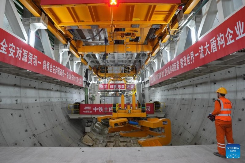 | ?να? εργαζ?μενο? απ? την China Railway 14th Bureau Group Co., Ltd. εργ?ζεται στη μηχαν? δι?νοιξη? σηρ?γγων "Yongzhou" στην υποθαλ?σσια σ?ραγγα Jintang τη? σιδηροδρομικ?? γραμμ?? Ningbo-Zhoushan στην επαρχ?α Zhejiang, ανατολικ? Κ?να, στι? 25 Φεβρουαρ?ου 2025. |