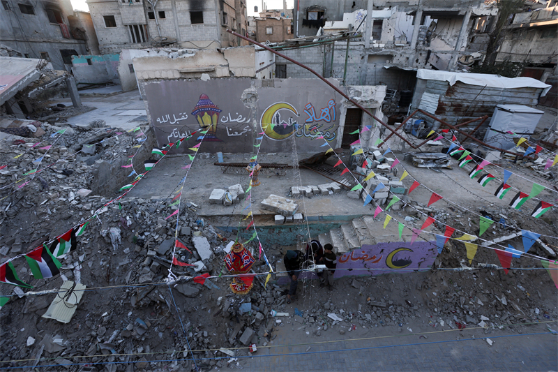 Εν? οι Μουσουλμ?νοι σε ?λο τον κ?σμο γι?ρταζαν το Ραμαζ?νι με προσευχ?, αναστοχασμ? και εορτασμο??, οι κ?τοικοι τη? Γ?ζα? προσπαθο?σαν να αντιμετωπ?σουν τι? συν?πειε? τη? συνεχιζ?μενη? ισραηλιν?? επ?θεση?. (Φωτογραφ?α / CGTN)
