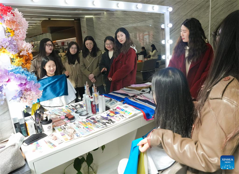 | Γυνα?κε? παρακολουθο?ν μ?θημα μακιγι?ζ στην π?λη Χουζο?, επαρχ?α Ζετζι?νγκ, ανατολικ? Κ?να, στι? 6 Μαρτ?ου 2025. Φωτογραφ?α / Xinhua |