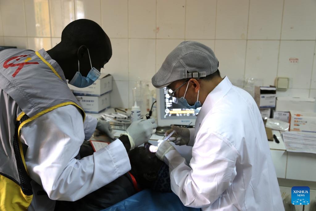 O Ζανγκ Τσα?χο?α (δεξι?), επικεφαλ?? ιατρ?? απ? το οφθαλμολογικ? τμ?μα του Νοσοκομε?ου Νο. 2 του Σανμ?νγκ, στην επαρχ?α Φουτζι?ν τη? Κ?να?, εξετ?ζει ασθεν? στο Περιφερειακ? Νοσοκομε?ο τη? Φατ?κ, στη Φατ?κ τη? Σενεγ?λη?, στι? 2 Μα?ου 2025. (Φωτογραφ?α / Xinhua)