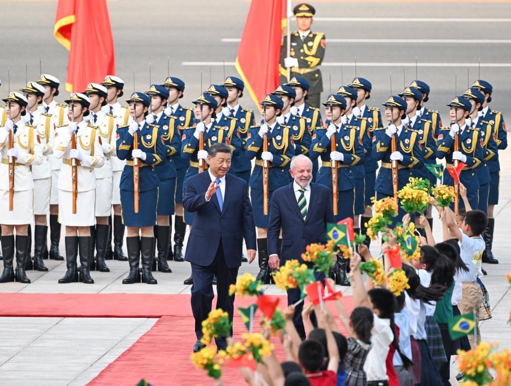 Ο Κιν?ζο? Πρ?εδρο? Σι Τζινπ?νγκ πραγματοποιε? τελετ? υποδοχ?? για τον Βραζιλι?νο Πρ?εδρο Λου?ζ Ιν?σιο Λο?λα ντα Σ?λβα στο Πεκ?νο, Κ?να, 13 Μα?ου 2025. (Φωτογραφ?α/Xinhua)