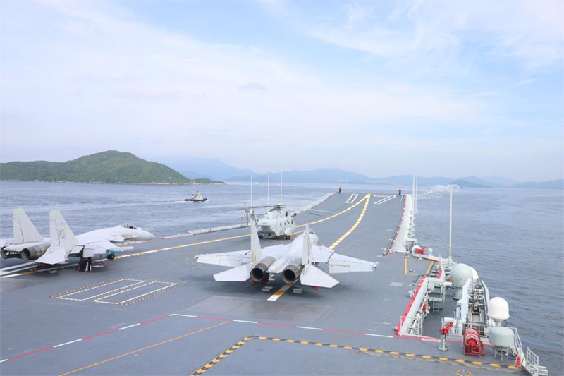 Ο Στ?λο? του Ναυτικο? του Λα?κο? Απελευθερωτικο? Στρατο? τη? Κ?να? (People's Liberation Army - PLA) με επικεφαλ?? το αεροπλανοφ?ρο Σαντ?νγκ φτ?νει στο Χονγκ Κονγκ, στι? 3 Ιουλ?ου του 2025. (Φωτογραφ?α / Xinhua)