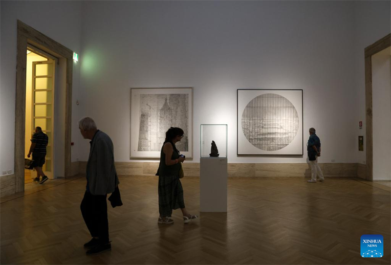 Επισκ?πτε? στην ?κθεση "2025 Διεθν?? ?κθεση Διαλ?γου Ανατολ?? και Δ?ση?: Απ? τη Σαγκ?η στη Ρ?μη" στην Εθνικ? Πινακοθ?κη Μοντ?ρνα? και Σ?γχρονη? Τ?χνη? στη Ρ?μη, τη? Ιταλ?α?, στι? 14 Ιουλ?ου του 2025. Η ?κθεση θα διαρκ?σει ?ω? τι? 14 Σεπτεμβρ?ου του 2025.